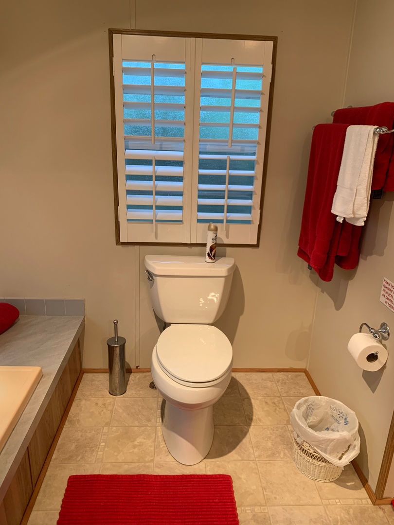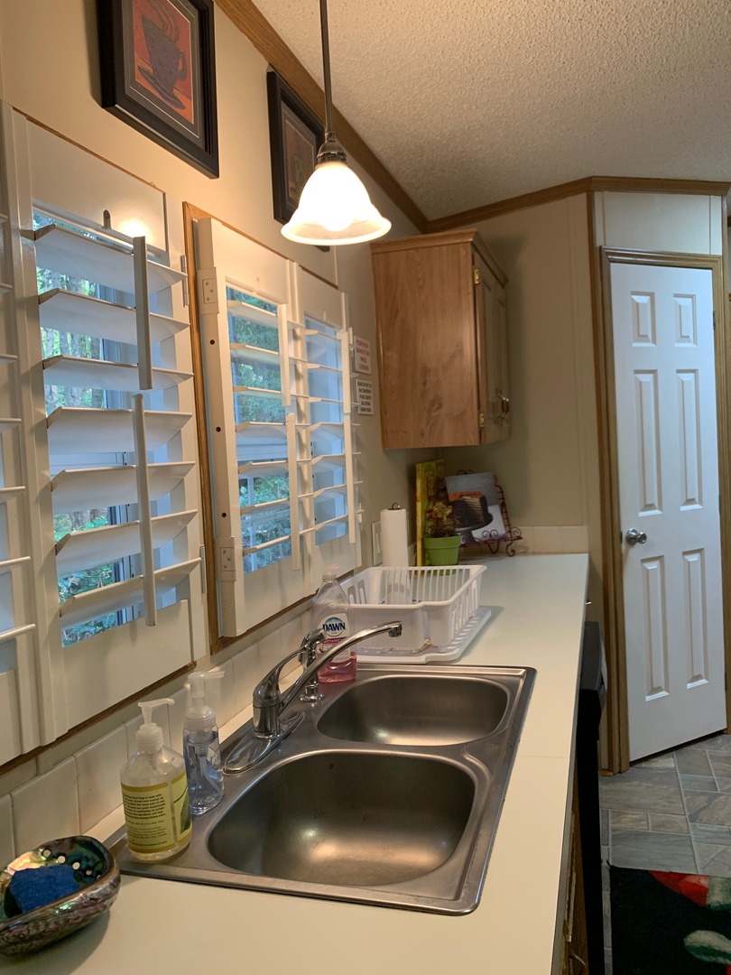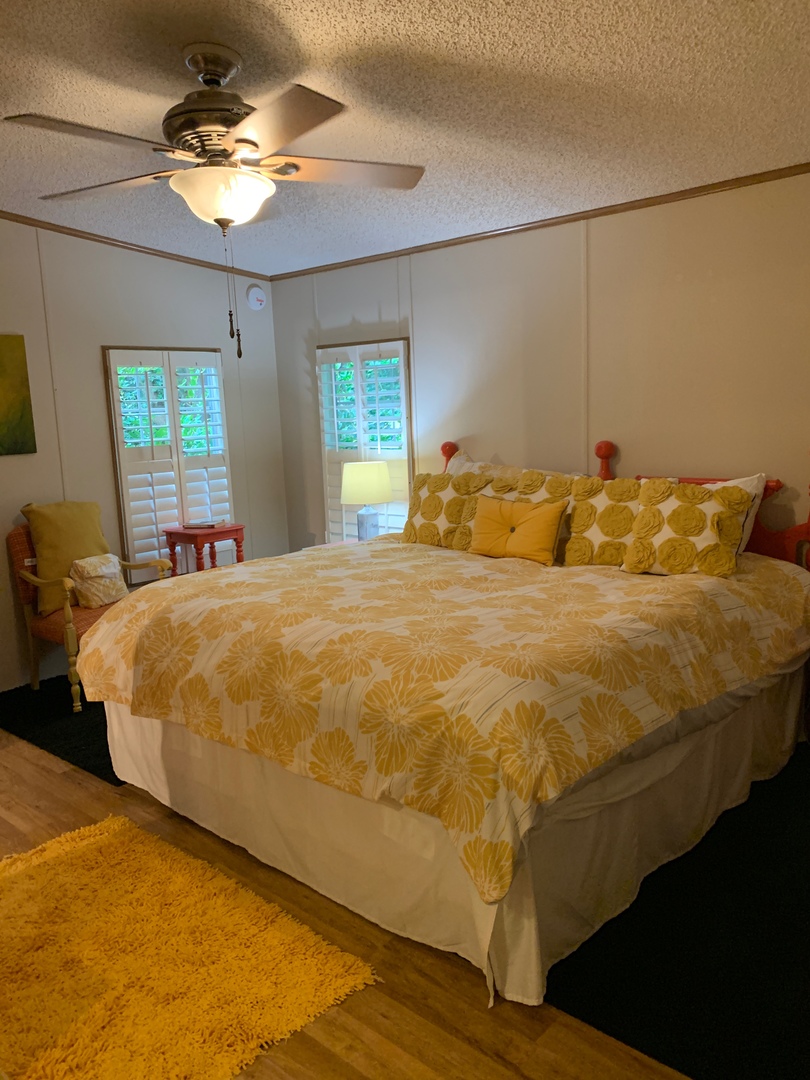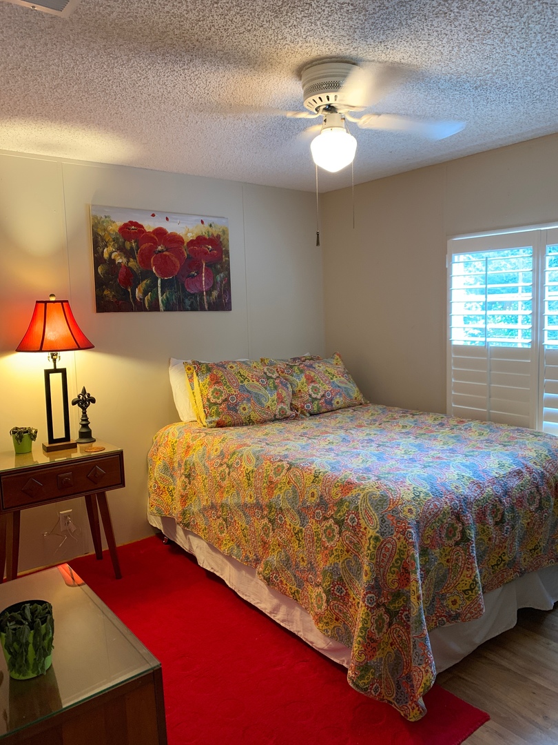 The home is adorned with custom plantation shutters and laminate flooring throughout.