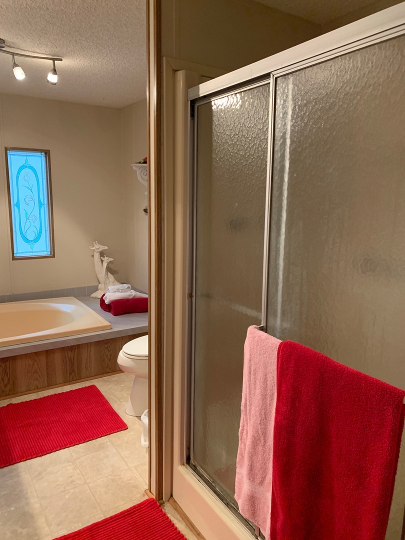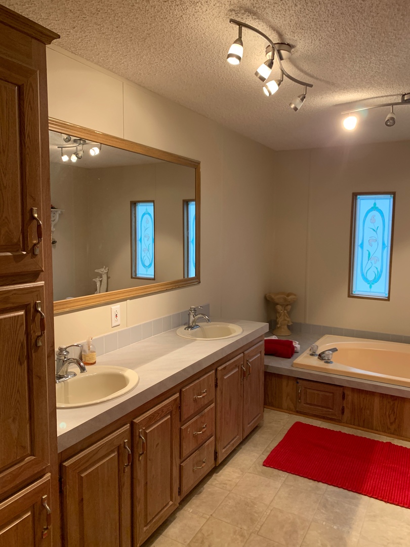 This home offers a large open floor plan with three bedrooms, 2.5 bathrooms, and a master suite featuring a large walk-in closet, garden tub, separate stand-up shower, and double sink vanity.