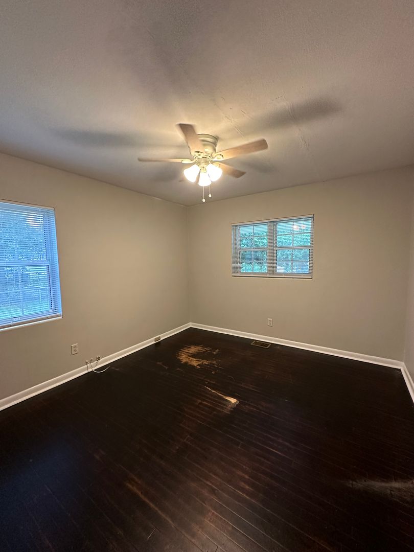 The apartment features ceiling fans, fresh paint, hardwood floors, a fenced yard, and includes lawn care and pest control. With a washer and dryer included, this apartment has everything you need for comfortable and convenient living.