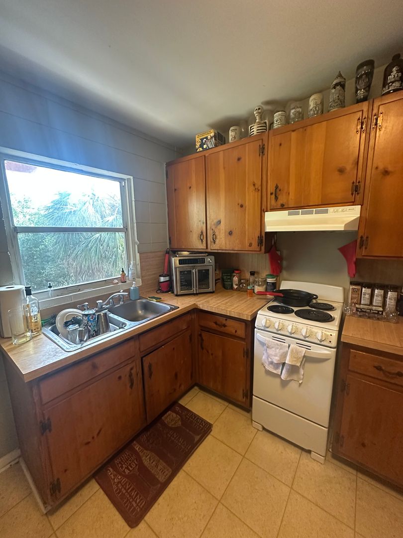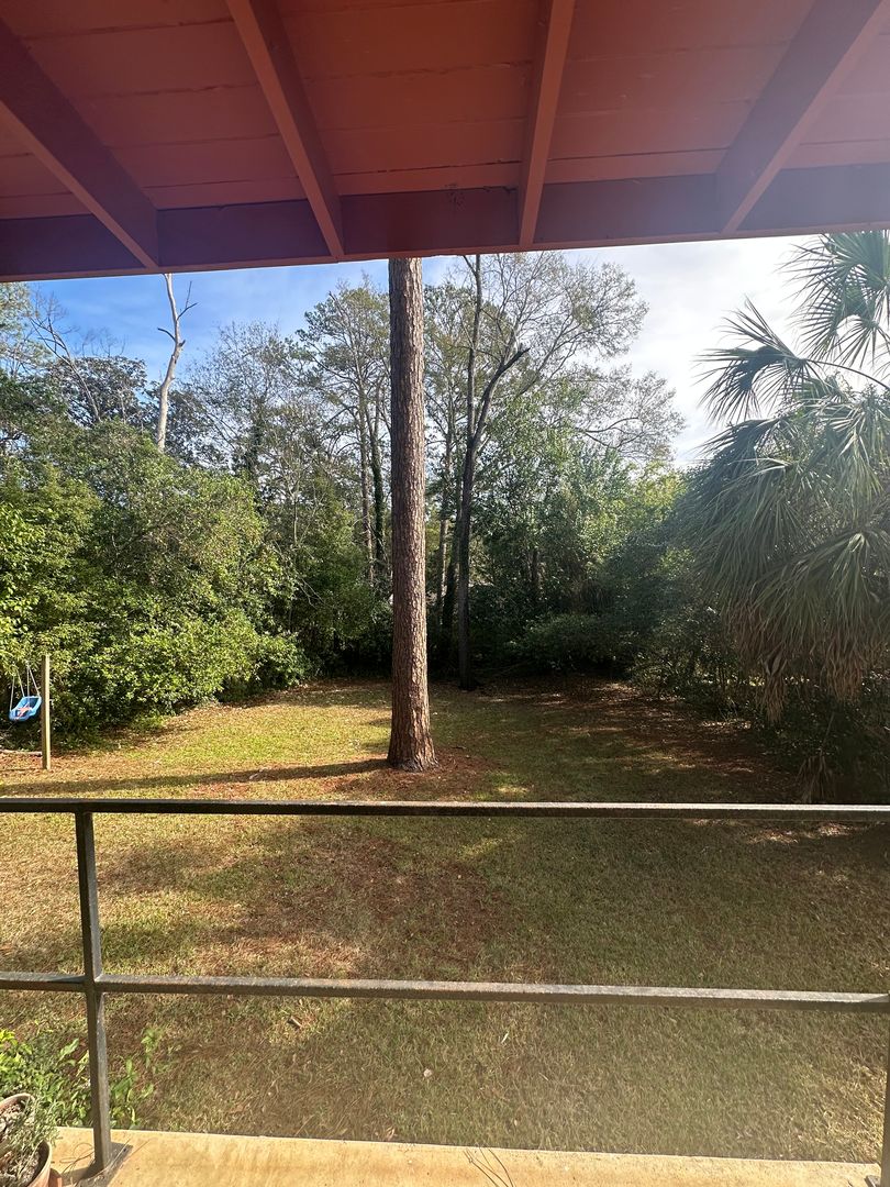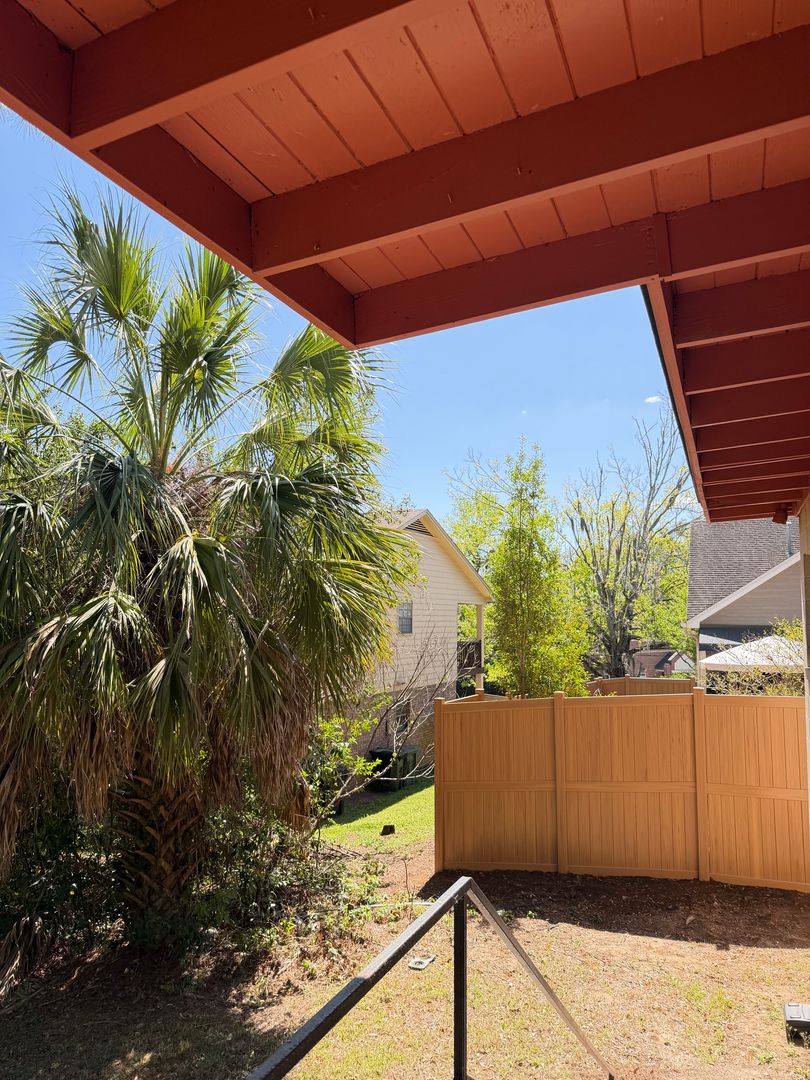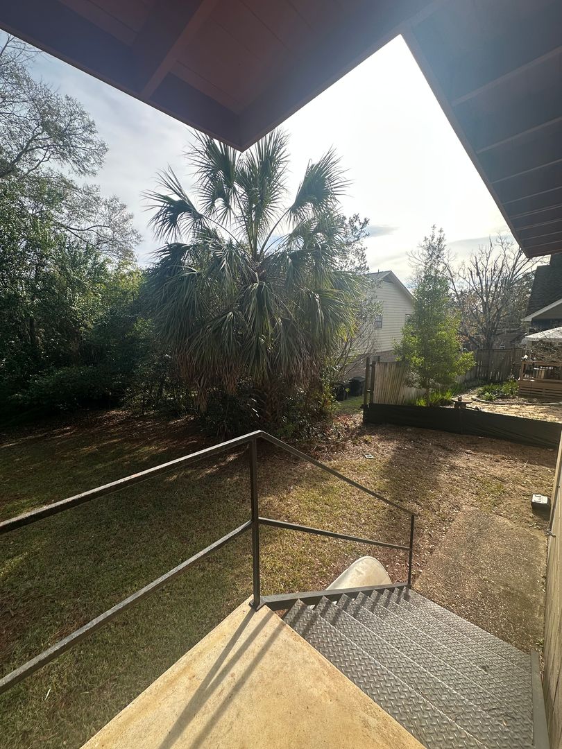 This 2-bedroom, 1-bath duplex unit located in the heart of Tallahassee offers an open floor plan with vaulted living-area ceilings and abundant natural light from many windows.